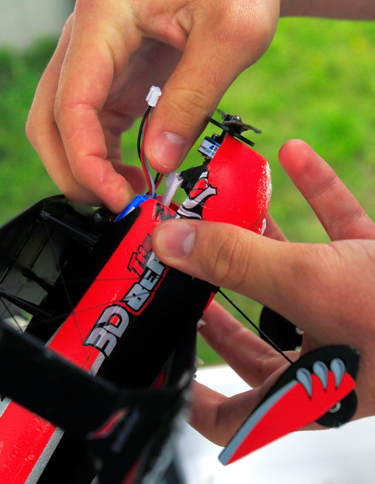 Ricky Martinez changes the battery on one of his planes before flying Saturday April 5, 2014 at Rebel Field in Mercedes. Martinez has several batteries that allows him to get more fly time. A battery can last eight to 15 minutes depending on wind.